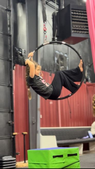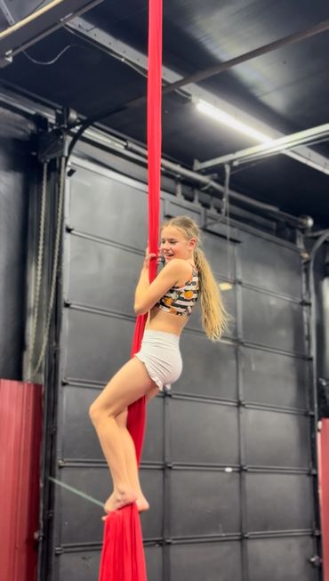 Our Aerial Silks & Hoop class introduces dancers to the exciting world of aerial arts using soft, fabric silks and the circular aerial hoop. Students learn how to climb, wrap, balance, spin, and create beautiful shapes in the air, all in a safe, supportive environment.